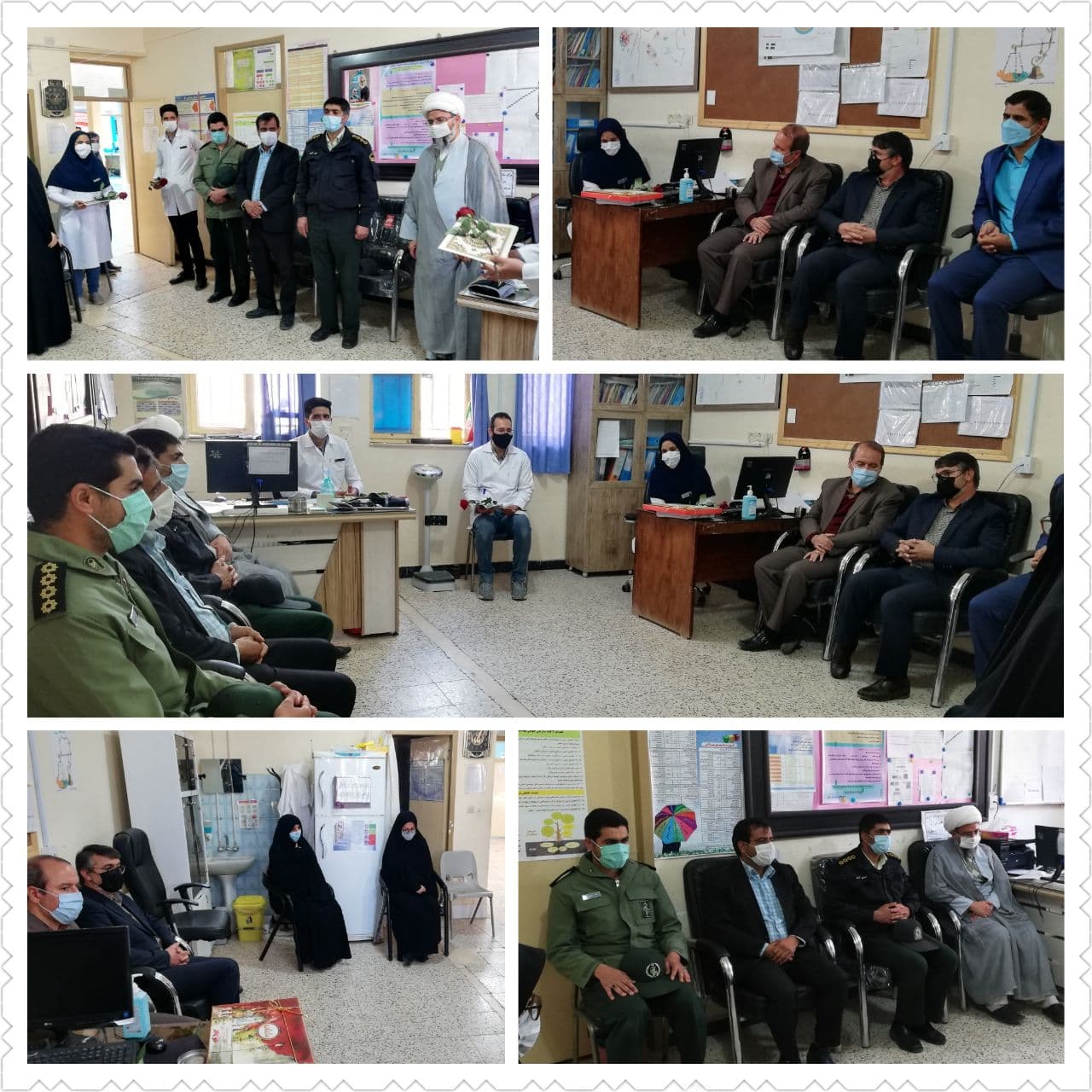 در این دیدار که فرمانده انتظامي، فرماندهان حوزه های بسیج سیدالشهدا وحضرت زینب س، مسئول کتابخانه عمومی شهید انصاری وعصو شورای اسلامی شهر آیسک حضور داشتند توسط مسئولان شاخه گل ولوح تقدیر تهیه شده از سوی شهرداری وشورای اسلامی شهر آیسک به پزشک وپرستاران این مرکز اهدا شد.