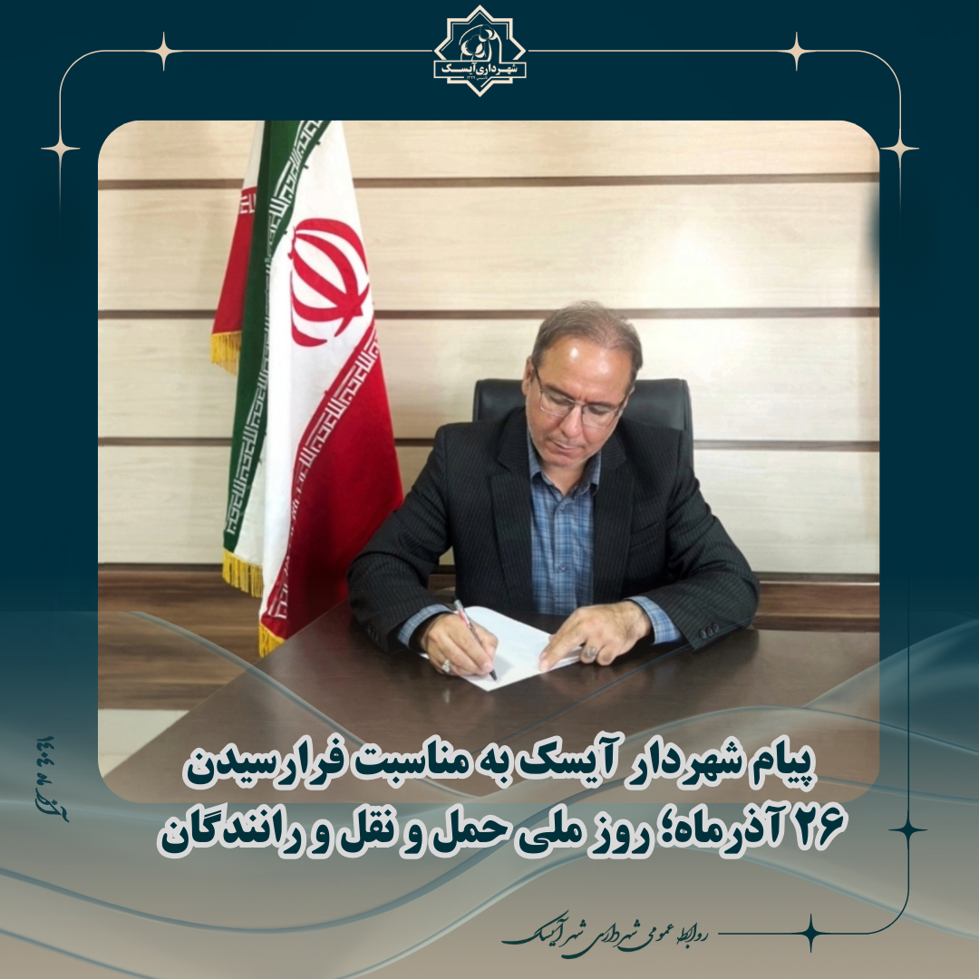 اینجانب ضمن گرامیداشت این روز پرافتخار، مراتب تبریک و تقدیر خود را به تمامی رانندگان زحمتکش، فعالان عرصه حملونقل و بهطور خاص همکاران گرانقدر راننده در مجموعه شهرداری آیسک اعلام نموده و از درگاه خداوند متعال برای این عزیزان، سلامتی، عزت، توفیق روزافزون و روزی حلال مسئلت مینمایم.