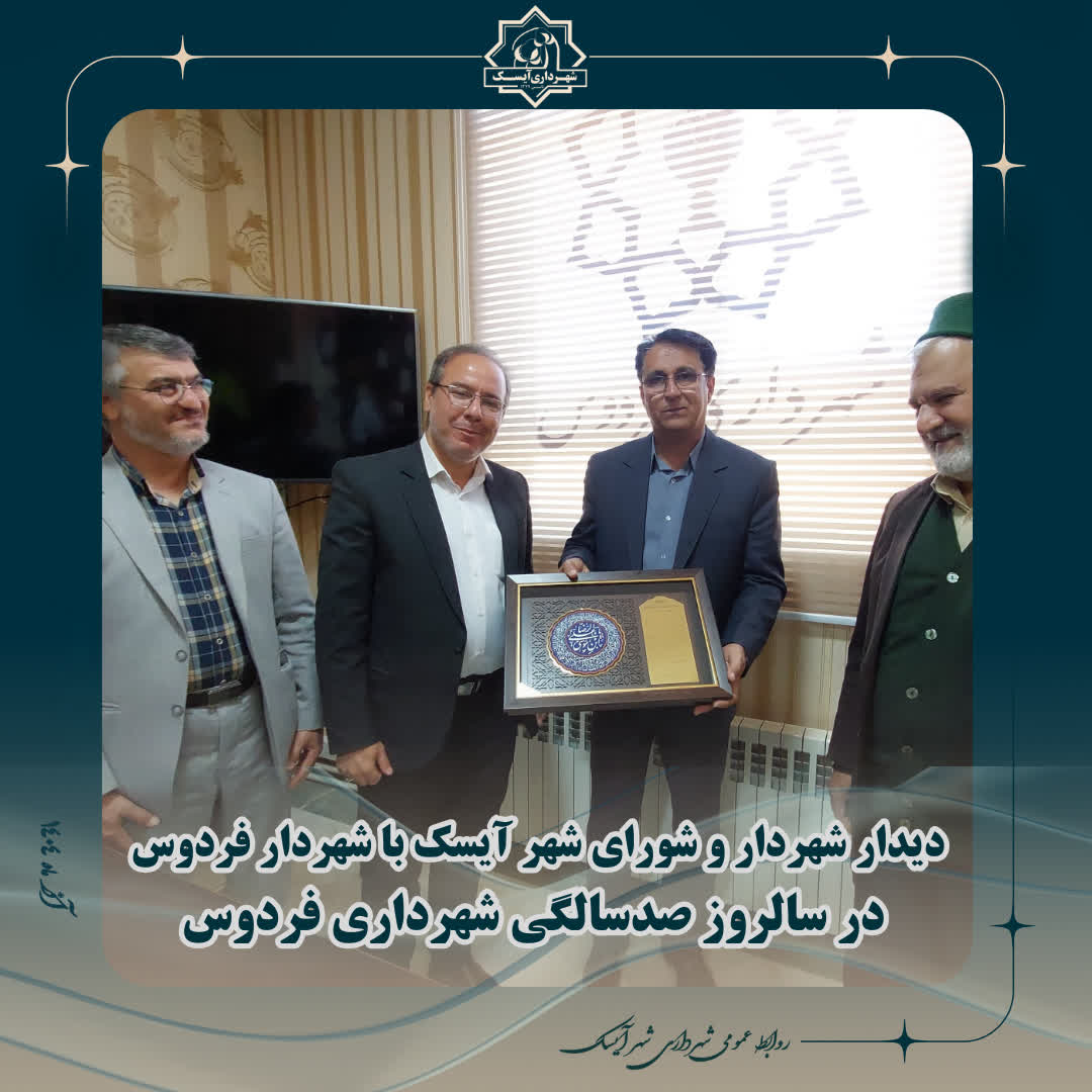 🔻در این دیدار، مهندس مصطفی غلامی شهردار آیسک با اشاره به سابقه درخشان مدیریت شهری فردوس اظهار داشت:«صد سال تلاش و خدمت خالصانه مجموعه شهرداری فردوس سرمايهای ارزشمند برای این خطه است. این رویداد فرخنده را به شهردار فردوس و مردم شریف فردوس تبریک میگویم و امیدوارم استمرار تعاملات و تبادل تجربیات میان دو شهر، زمینهساز تحقق برنامههای مؤثرتر در مسیر پیشرفت و آبادانی منطقه باشد.»