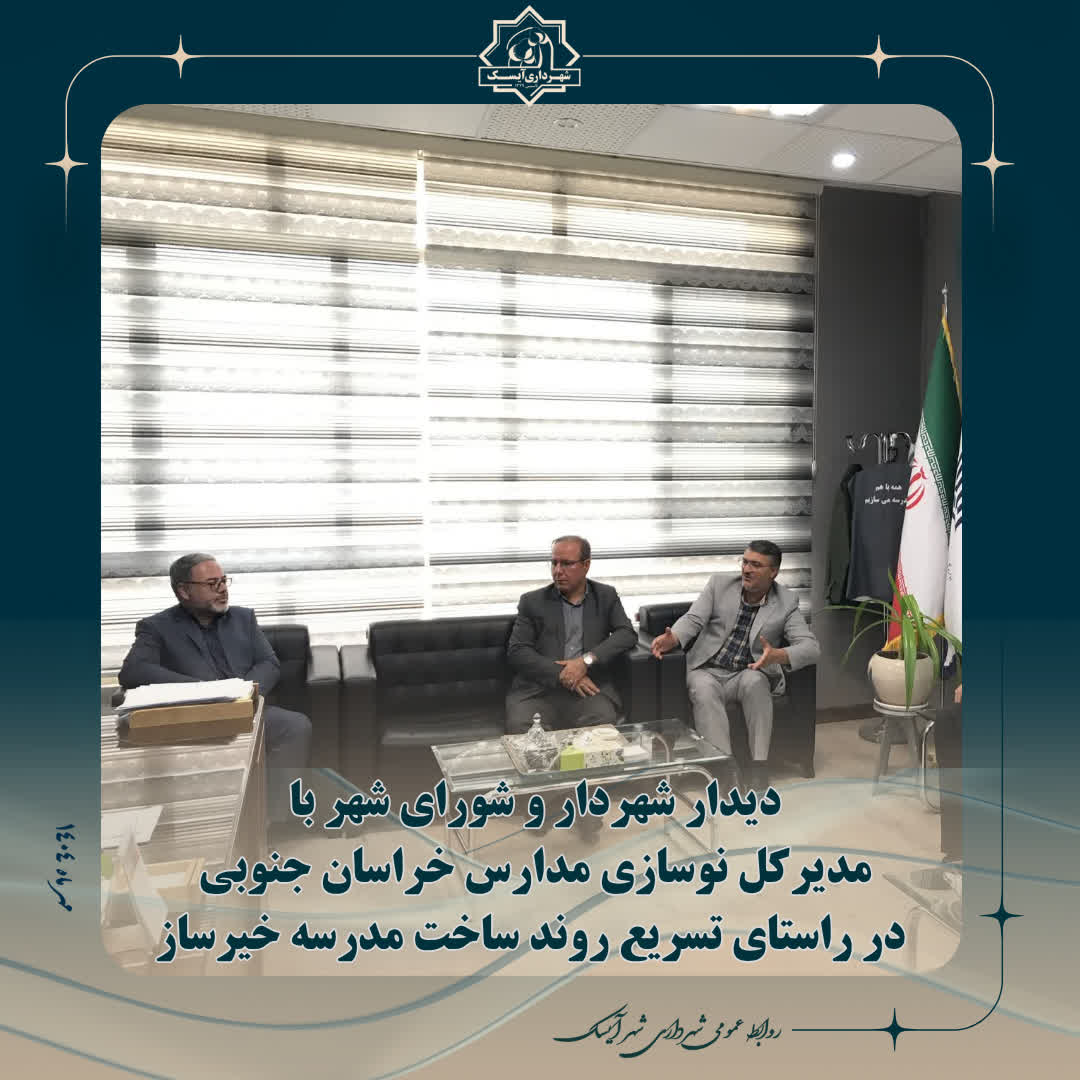 شهردار و رئیس شورای اسلامی شهر آیسک با مهندس رخسارپور، مدیرکل نوسازی مدارس استان خراسان جنوبی و آقای مهندس فاتحی، مسئول اداره نوسازی مدارس شهرستان سرایان دیدار و گفتوگو کردند.