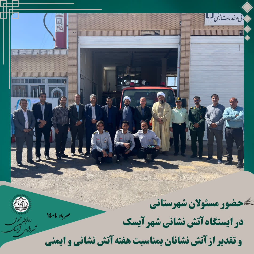 همزمان با فرارسیدن روز آتشنشانی و هفته ایمنی، جمعی از مسئولان شهرستانی با حضور در ایستگاه آتشنشانی شهر آیسک، ضمن تبریک این روز، از تلاشها و ایثارگریهای آتشنشانان تجلیل کردند.