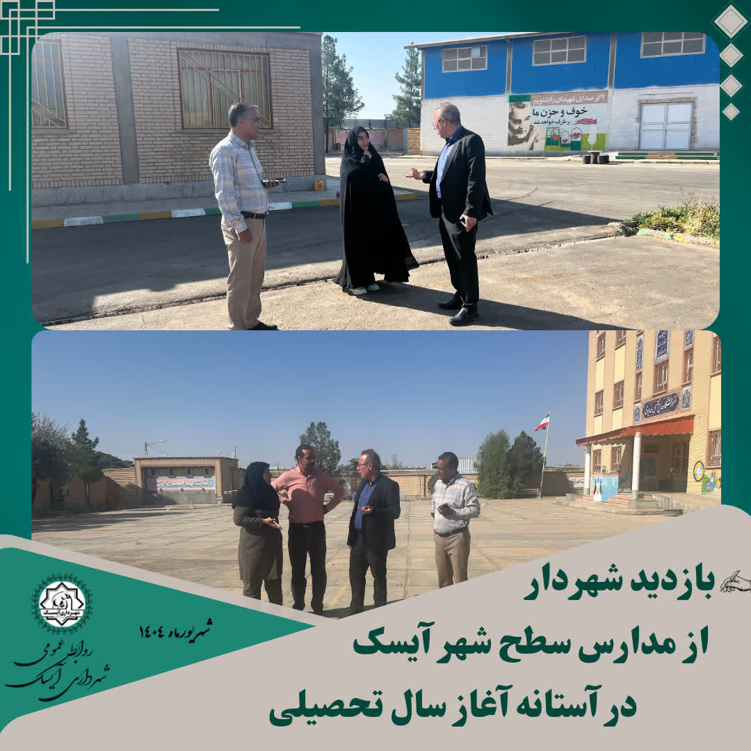 🔻در آستانه آغاز سال تحصیلی جدید، مهندس مصطفی غلامی شهردار آیسک با حضور در مدارس سطح شهر، ضمن دیدار با مدیران و کادر آموزشی، از نزدیک در جریان نیازها، مطالبات و مسائل زیرساختی این مراکز آموزشی قرار گرفت.