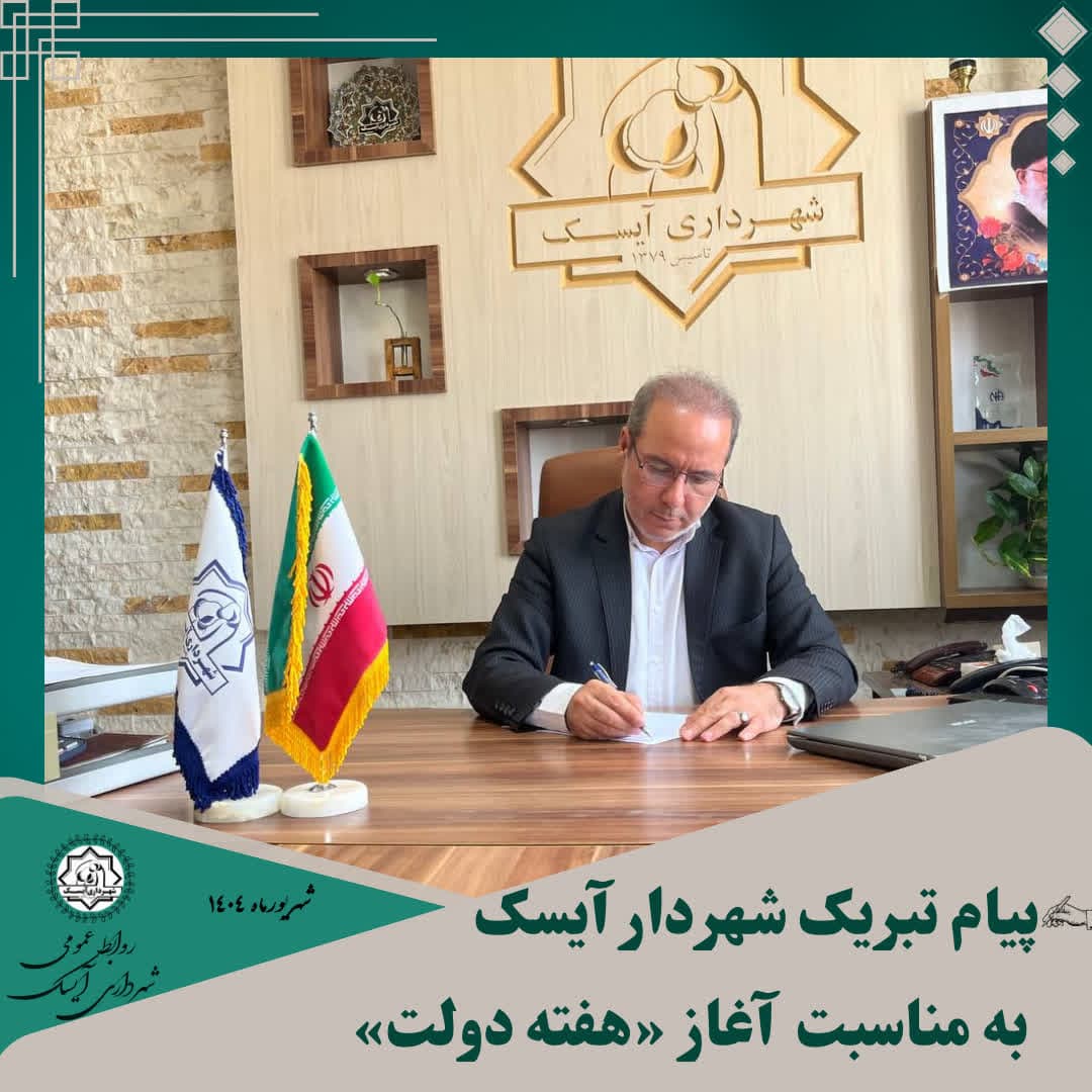 اینجانب ضمن گرامیداشت یاد و خاطره شهدای دولت، فرارسیدن هفته دولت را به دولتمردان خدوم، خدمتگزاران صدیق نظام اسلامی و بهویژه مردم شریف و نجیب شهر آیسک تبریک عرض نموده و امیدوارم در پرتو الطاف الهی و همت جمعی، شاهد رشد، عمران و آبادانی هر چه بیشتر این دیار باشیم.
