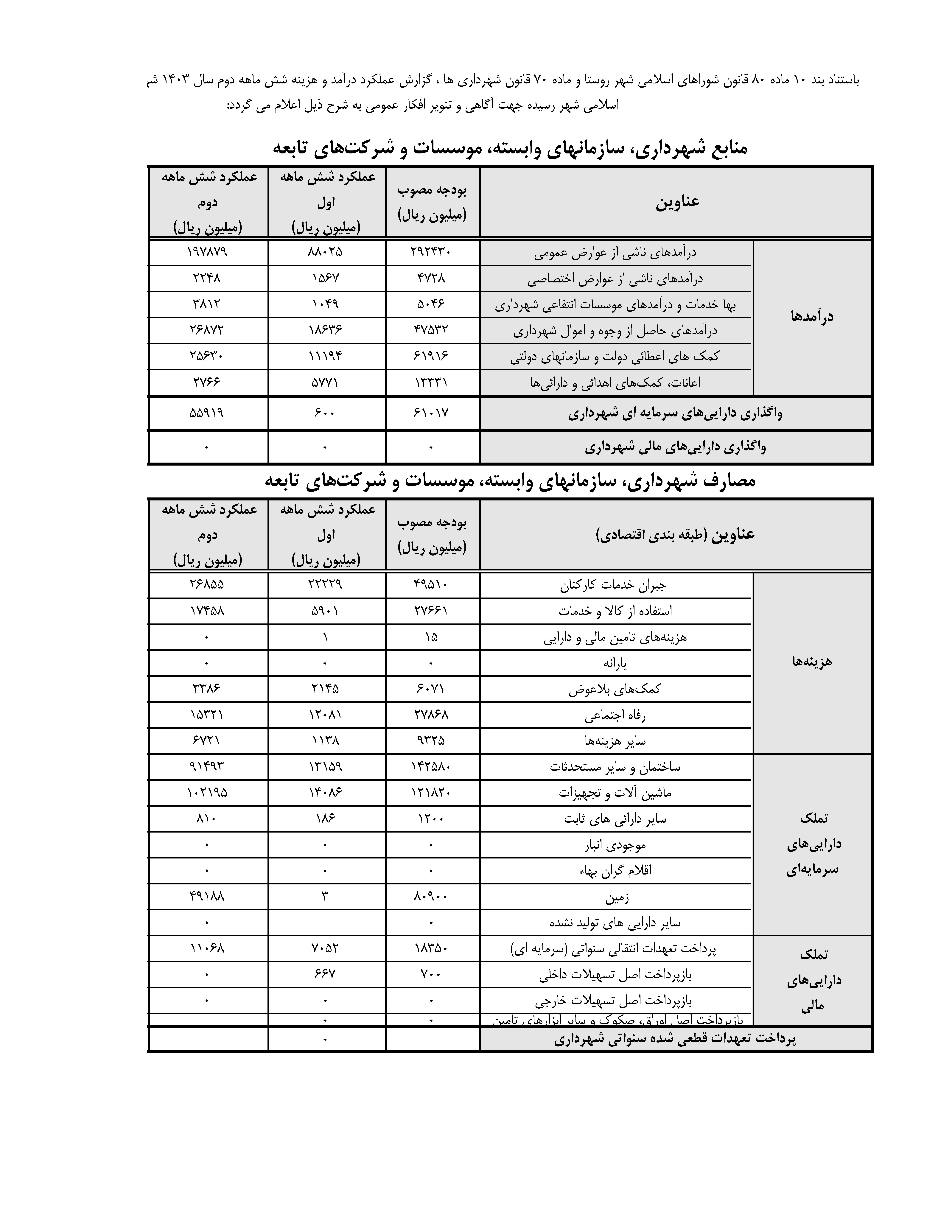 هدف از انتشار این گزارش، شفاف سازی عملکرد و ارائه اطلاعات به شهروندان گرامی است.
