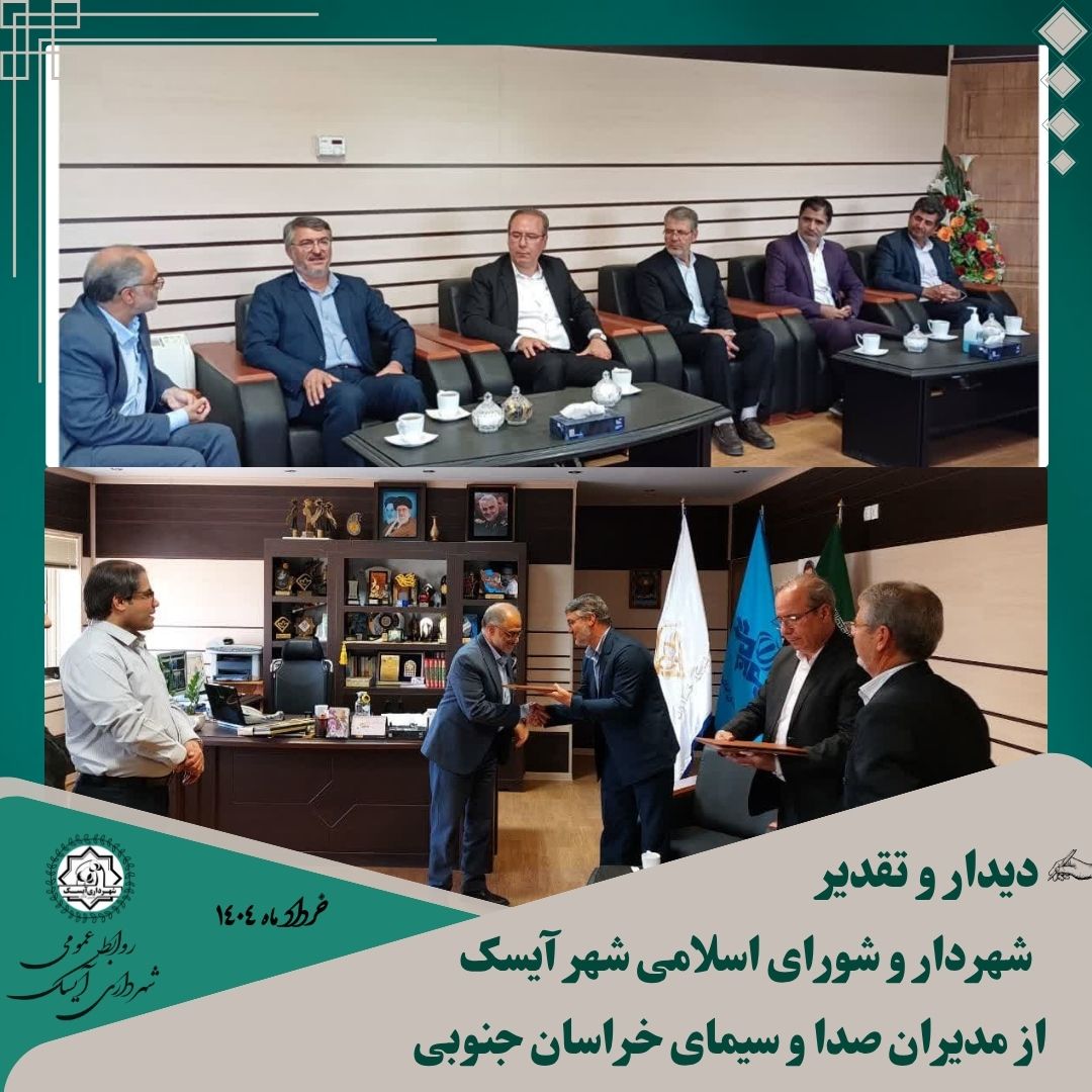 🔻در پایان این دیدار، به نمایندگی از مردم آیسک، از زحمات مدیران محترم صدا و سیما با اهدای لوح تقدیر به آقایان مهندس آینهدار، مهندس صالحیبیک (معاون محترم صدا) و مهندس جعفرزاده (معاون محترم سیما) تجلیل شد.