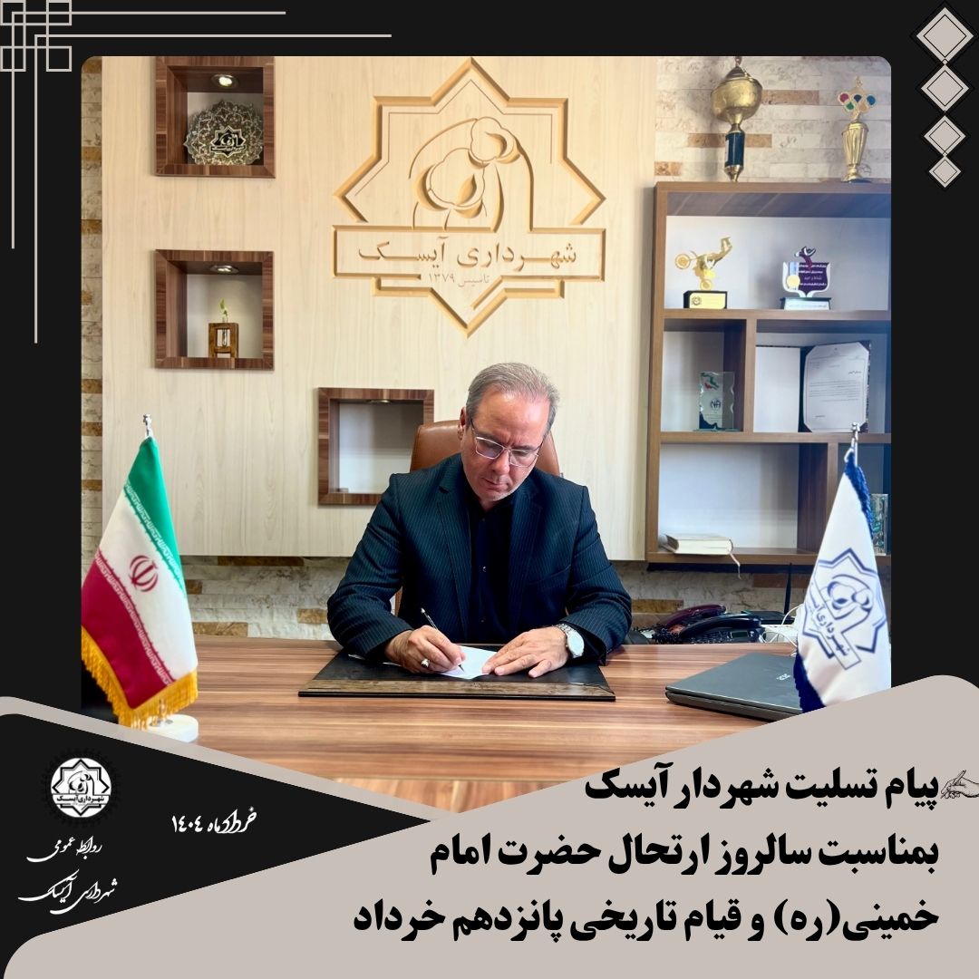 اینجانب، ضمن گرامیداشت یاد و نام امام راحل عظیمالشان و شهدای قیام خونین پانزده خرداد، این ایام را به مردم شریف و انقلابی شهر آیسک تسلیت عرض نموده و بر عهد خدمتگزاری در مسیر آرمانهای ایشان، پای میفشارم.