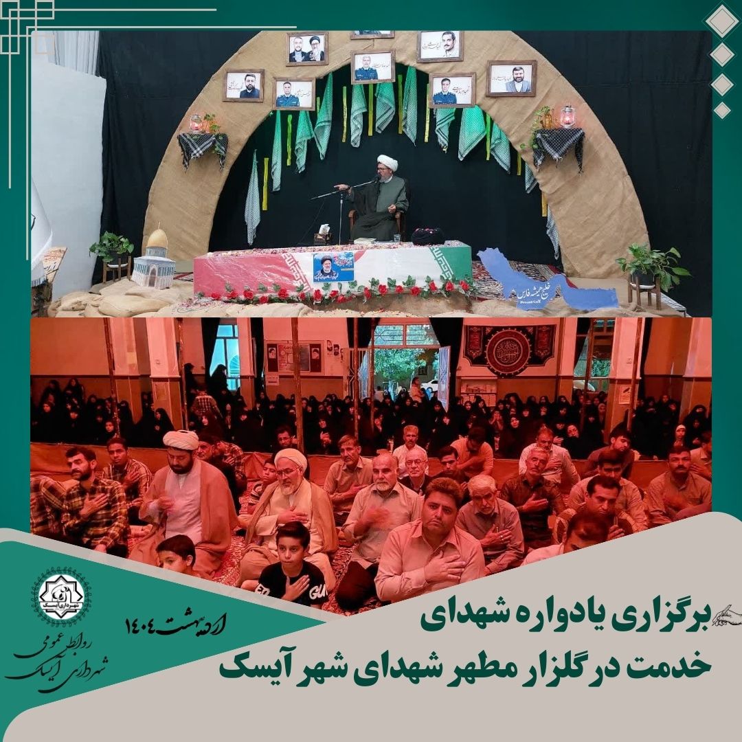 🔻 این یادواره، به همت کمیته خادمین شهدا آیسک و با همکاری شهرداری آیسک، قرارگاه جهادی شهید برونسی، پایگاه بسیج شهید مهرداد و حوزههای مقاومت بسیج خواهران و برادران برگزار شد.