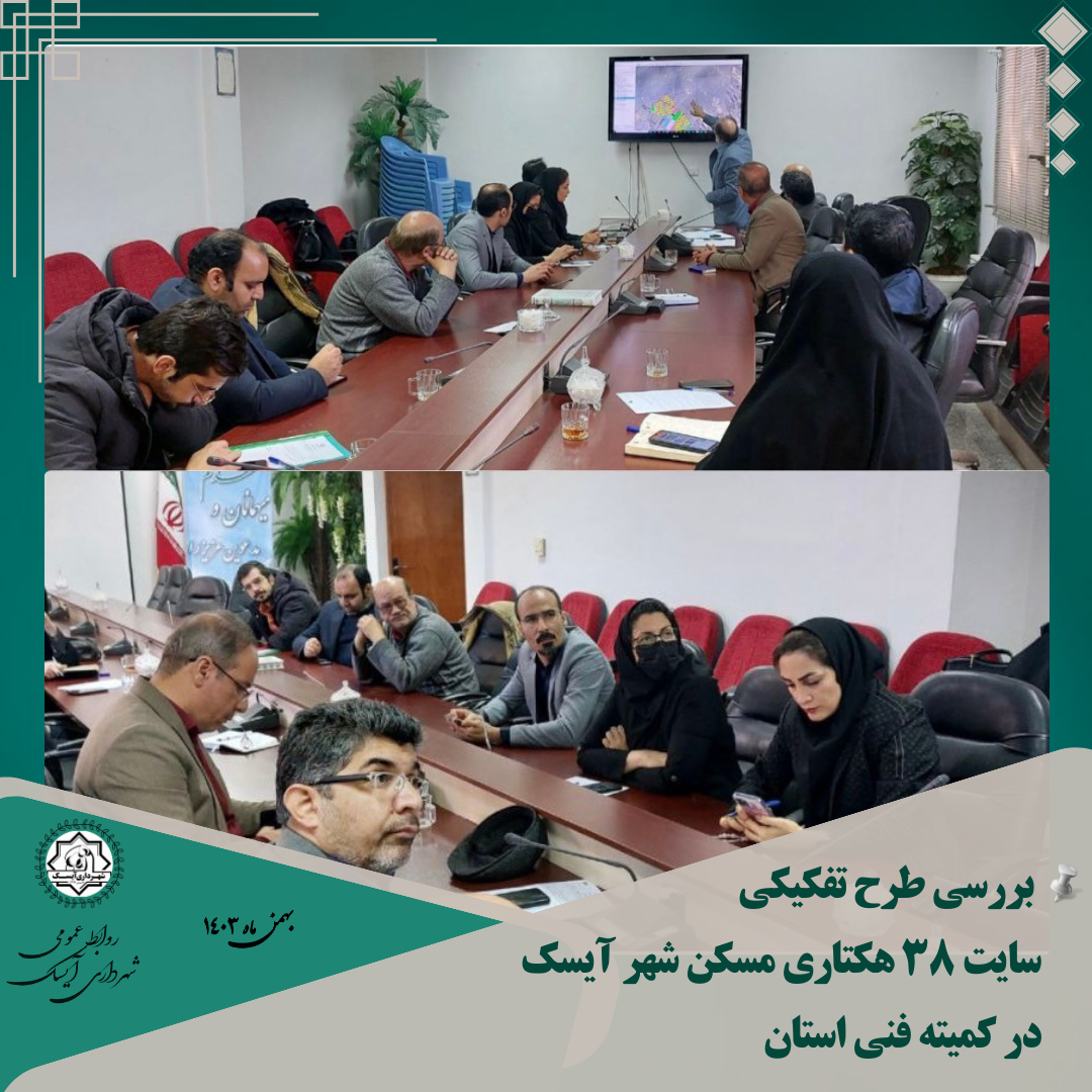 🔻در این جلسه که مهندس "مصطفی غلامی" شهردار آیسک و"حاتمی" نائب رئیس شورای اسلامی شهر آیسک ، مشاور طرح، کارشناسان شهرسازی، نمایندگان آب منطقهای، آب وفاضلاب، میراث فرهنگی، جهادکشاورزی، مخابرات و شرکت گاز استان حضور داشتند، جزئیات نقشه، کاربری ها، معابر و عوارض و... بررسی وکلیات طرح مصوب شد.