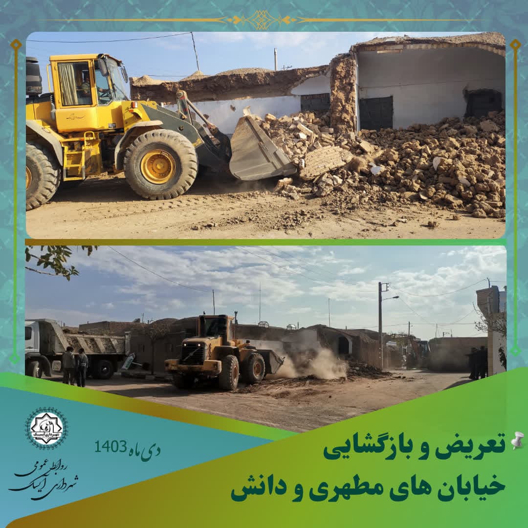 🔻 در راستای بهبود حمل و نقل و عبور و مرور شهری، عملیات بازگشایی خیابان های مطهری ۵ و دانش توسط #شهرداری_آیسک صورت گرفت