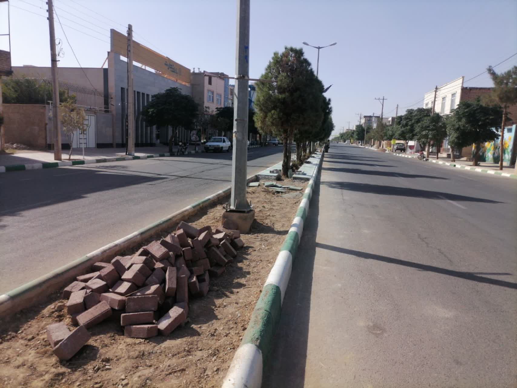 با توجه به مدیریت بحران آب شهرداری جهت صرفه جویی در مصرف آب و زیباسازی منظر شهری نسبت به کفپوش نمودن قسمتی از آیلند بلوار امام رضا(ع)اقدام نمود .
